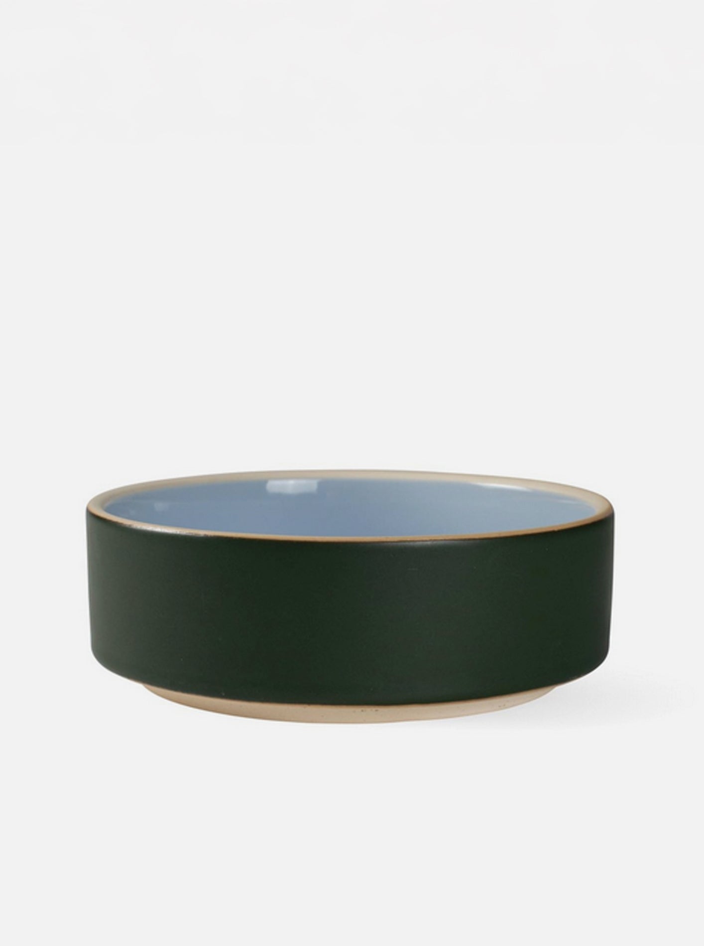 A beautifully crafted STONEWARE PET BOWL designed for everyday use. Featuring a matte forest green exterior, glossy light blue interior, and exposed stoneware edges, this bowl combines simple elegance with functional design.