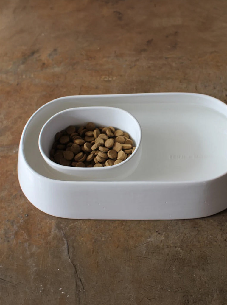 Keep your pet’s food fresh and pest free with the ANTI-ANT CERAMIC FOOD + WATER BOWL by Benji + Moon. Designed for cats and small dogs who like to snack throughout the day, this clever bowl features a built-in water moat that prevents ants from crawling into your pet’s food.