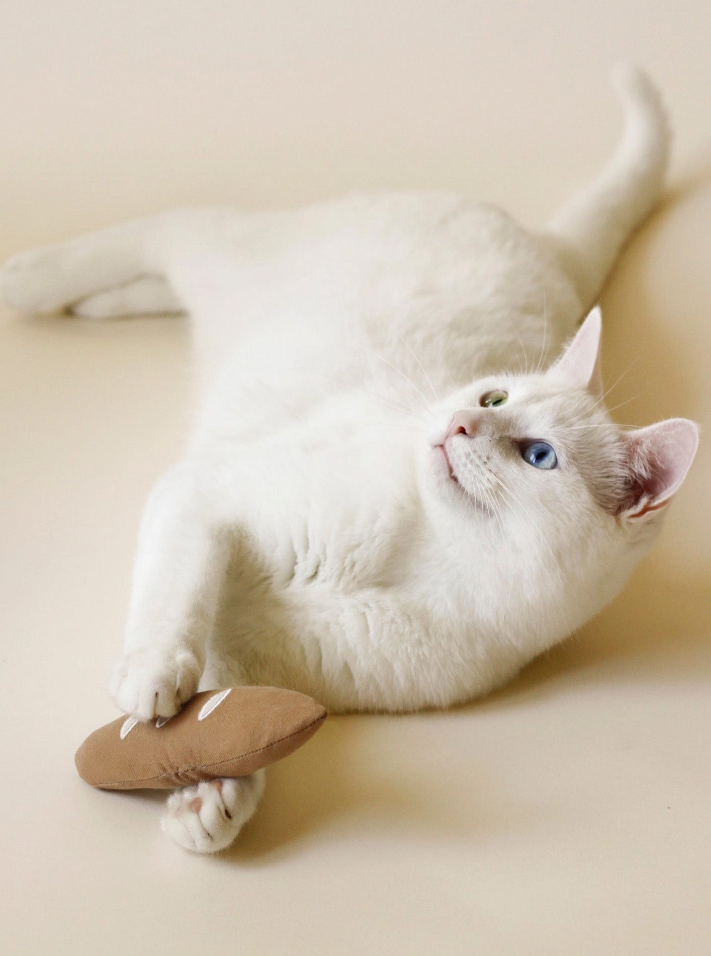 A cozy bakery inspired treat with plenty of playful charm, this WARM BAGUETTE CAT TOY is the perfect blend of cute and crave worthy. Shaped like a freshly baked loaf and sized just right for batting and bunny kicks, it’s an irresistible addition to your cat’s toy rotation.