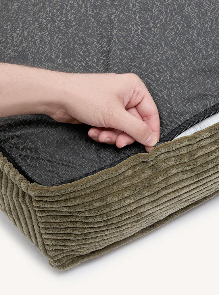 The durable fabric is highly resistant to bites, pulls, and everyday wear, while reinforced double seams add extra strength and longevity. Crafted with care for both comfort and conscience, this bed is the perfect resting place for the modern beast.