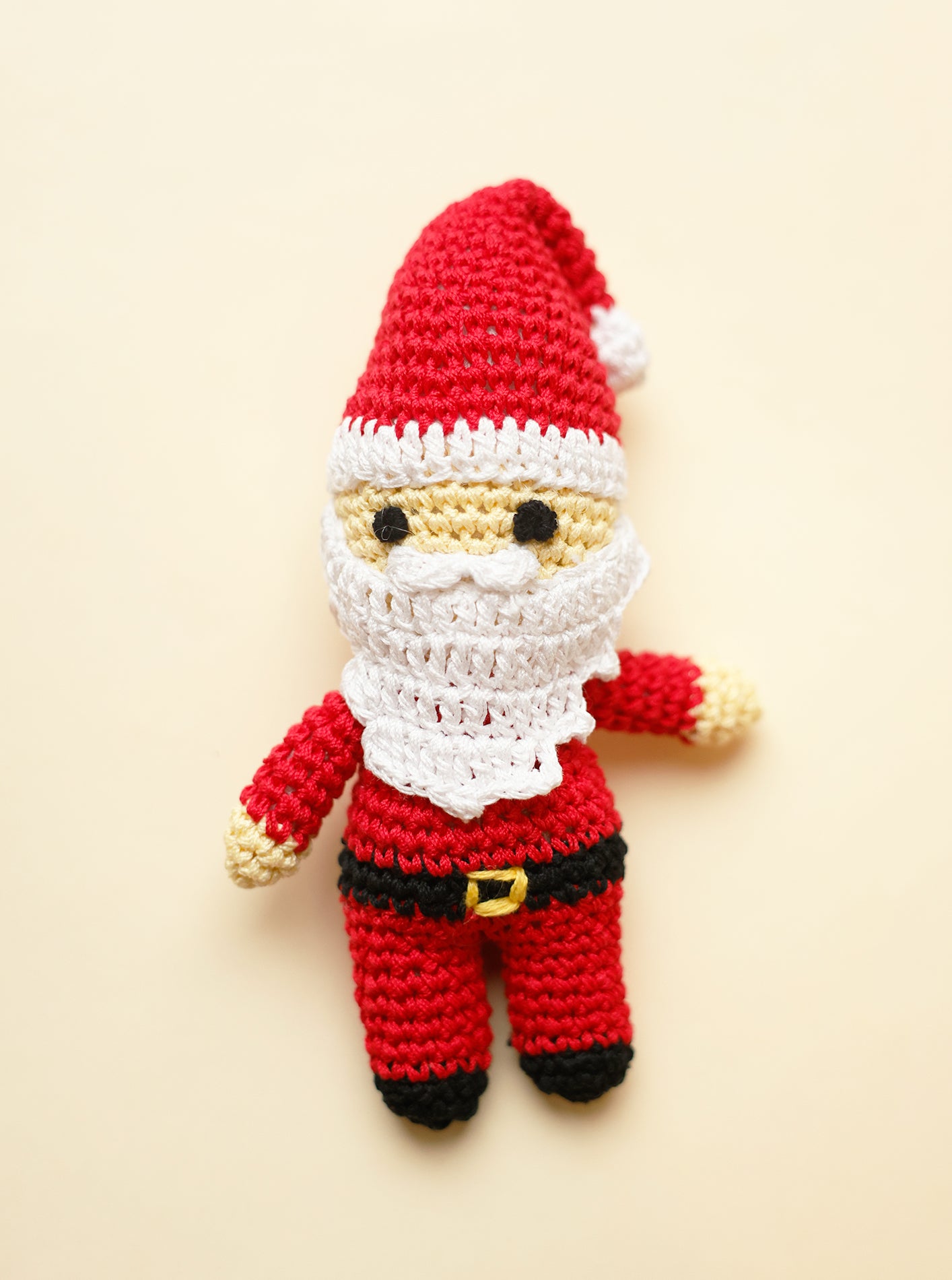 A charming little playtime companion your pup will love! This SANTA DOG TOY is as cute as it is clever — crafted from soft, organic materials with a woven texture that keeps tails wagging. The knit pattern gently massages teeth and gums while your dog chews, making playtime both fun and functional.