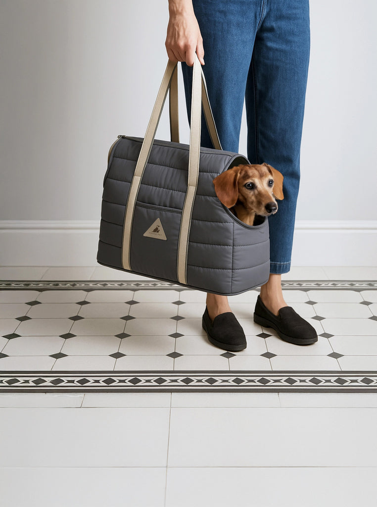 A thoughtfully designed carrier that blends comfort, practicality, and timeless style. The FINN CARRIER features a lightweight quilted nylon exterior, a soft cushioned interior, and smart details that make every outing effortless. Perfect for city strolls, travel days, or cozy commutes, it’s the ideal mix of form and function for pets on the go.