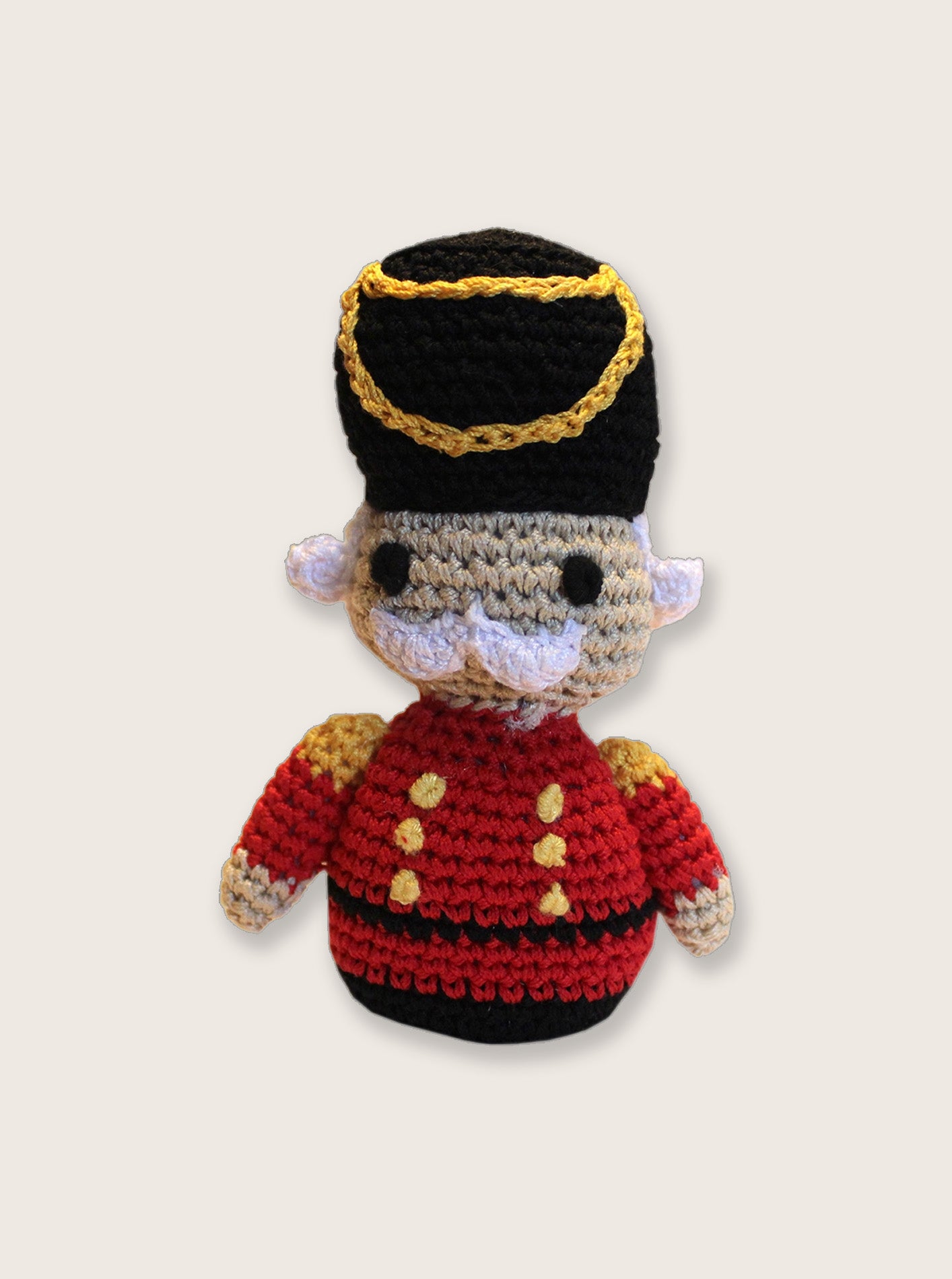 A charming little playtime companion your pup will love! This NUTCRACKER DOG TOY is as cute as it is clever — crafted from soft, organic materials with a woven texture that keeps tails wagging. The knit pattern gently massages teeth and gums while your dog chews, making playtime both fun and functional.