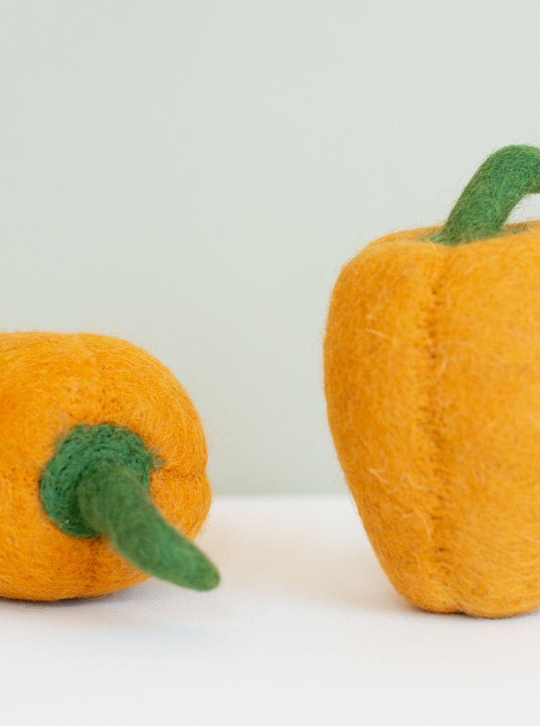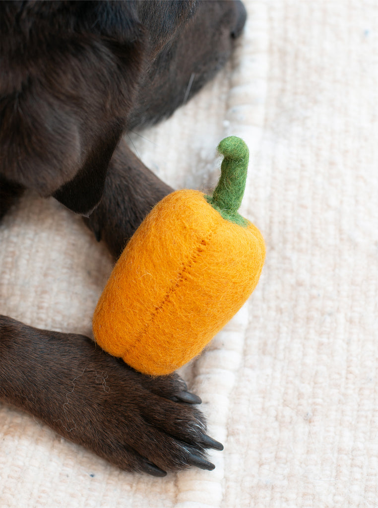 Bright, bold, and full of character, this YELLOW WOOL BELL PEPPER is a playful pick for your pup. Handcrafted from 100% natural wool and densely felted for durability, it’s made to withstand plenty of chomps, tosses, and tug-around-the-house moments.